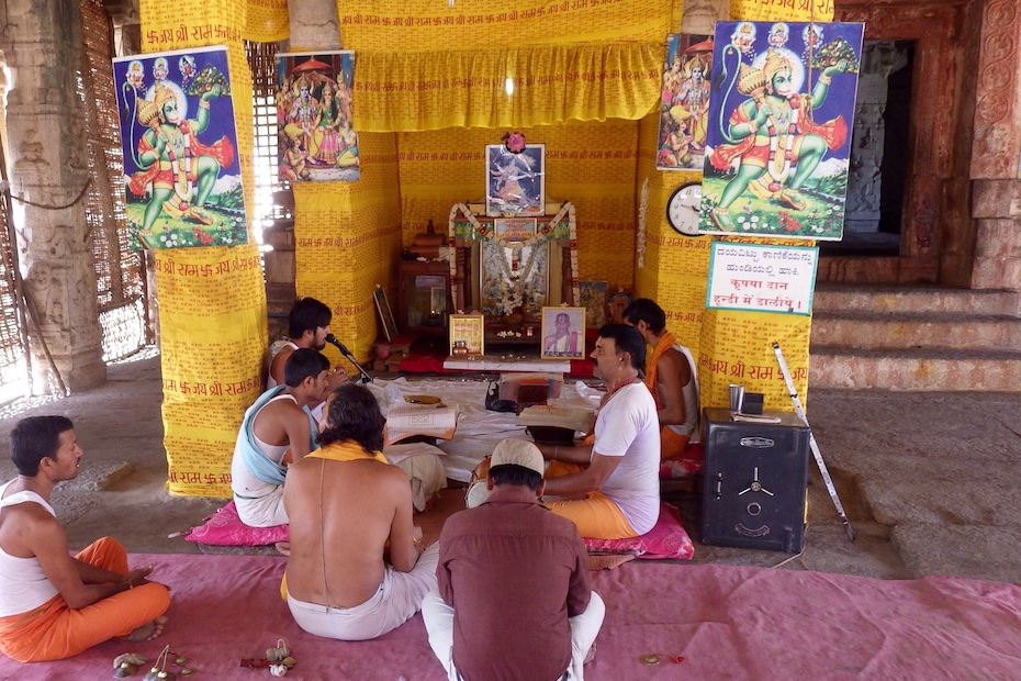 Hampi is a village in the Karnataka state in India that dates back thousands of years. It has a rich cultural and architectural heritage and remains an important religious center for Hindus. Amongst the many wonders that make up this UNESCO World Heritage Site is the Malayavanta Raghunatha temple. As of this recording in 2016, these chants had been continuously performed 24 hours a day for over seven years.