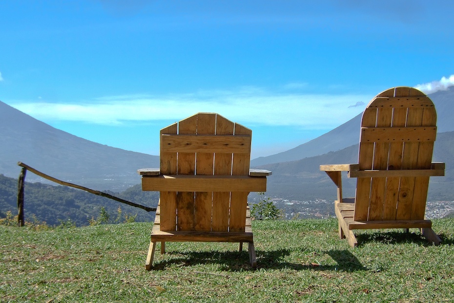 Located on a hillside just outside of Antigua, the Earth Lodge provides views of the volcanic landscape that dots the Guatemalan central highlands. The rising sun provides a glimpse of the three volcanoes that surround the city, including the active “Fuego” that spews grey smoke daily.